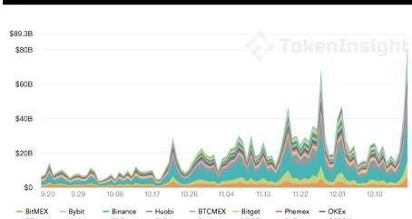 比特币期货和永续合约过去30天成交量,截至12月18日早9点,来源:tokeninsight.com