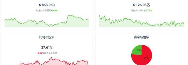 加密货币总市值在过去24小时内从$868.30B增加到$868.96B,涨幅为0.08%