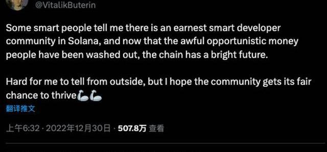 在SOL代币跌至8美元之后的第五天,Ethereum创始人VitalikButerin发表了一则推文,