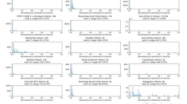 主要发现之一是集合和NFT类别中的项目可能比同一集合中的项目表现得更相似。因此,价格分布分析可以让用户和开发人员更全面地了解在哪里最好地找到流动性,以及金融化方法的潜在市场。