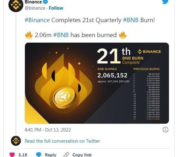 领先的加密货币交易所Binance宣布,其最新的季度$BNB代币销毁已经看到它销毁了超过200万个代币,在撰写本文时价值超过5.75亿美元。