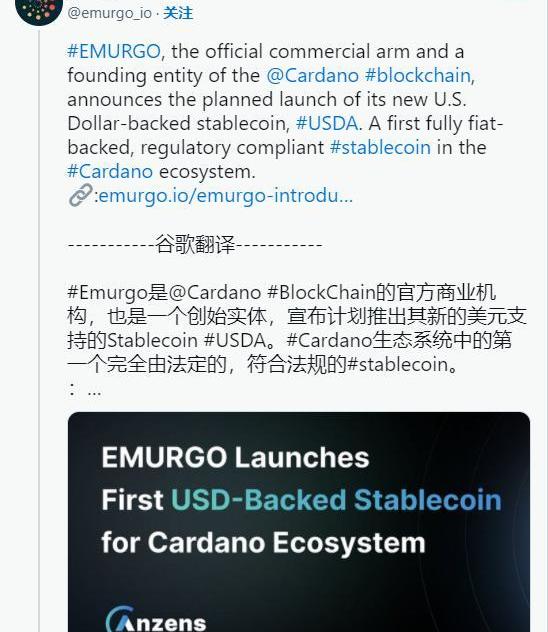 Emurgo与位于美国的一家受监管的金融服务组织合作发行USDA。据Emurgo称,这种合作关系确保稳定币完全合规并遵守监管规范。