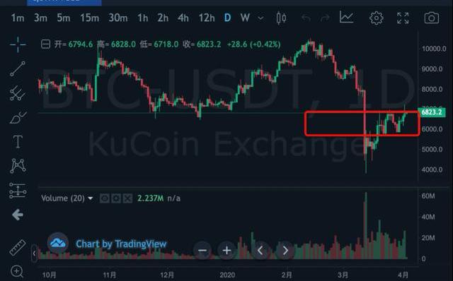 昨晚原油市场暴涨带领美股、黄金等普涨,而BTC在晚间也迎来了一波拉升,据库币全球站数据,BTC昨晚最高攀升到7200美元,一度冲破7000美元的重要压力位,但随后BTC在7100左右剧烈震荡,极速下挫又重新回到7000以下,最低跌到6600美元,目前在6800美元左右徘徊。