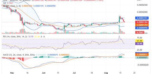 柴犬2022年8月19日的价格分析将考虑综合到下方日线图中的指标数据。