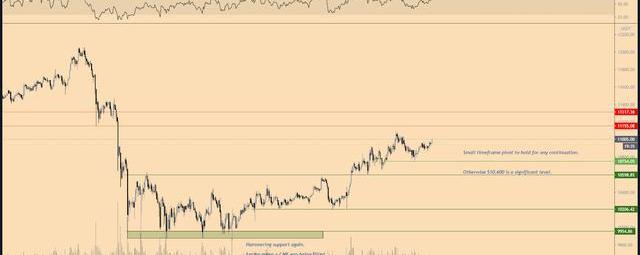 “10750美元的持有区域保持不变,我们再次将范围锁定在高位。持续上涨的关键突破位在1.11万-1.13万美元之间。如果这种情况发生,我们将朝着1.2万美元迈进。"
