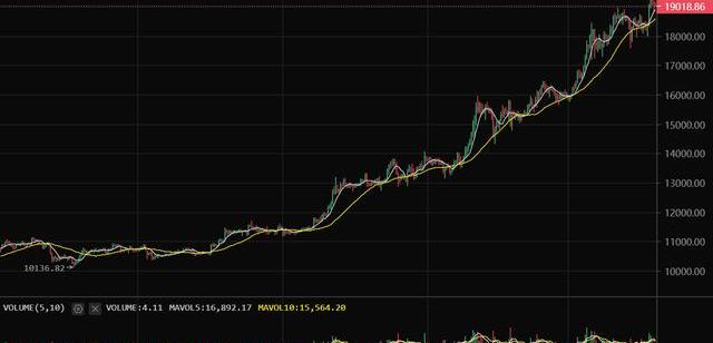 截至11月24日晚,比特币价格一度涨至19469美元/枚,年初至今上涨166%,距离2017年的历史最高点19891美元仅一步之遥。