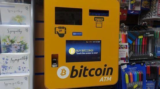 走进杂货店,一眼就能看到一台明黄色的比特币ATM机。
