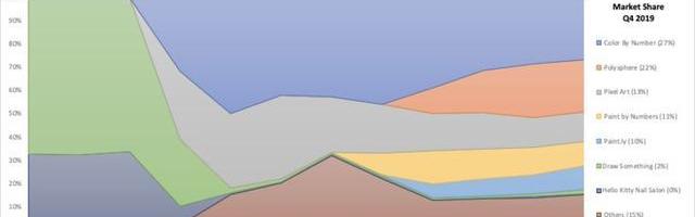 不过,在2019年2月份期间,苹果正式推出了对用户更友好的订阅付费管理功能。因此,一旦他们对游戏的参与度降低之后,用户更容易关闭填色游戏的订阅续费功能。有趣的是,苹果的管理功能推出之后,也恰是填色游戏收入降低之时,在2019年Q2至Q4之间,填色游戏的平均收入下滑了40%。