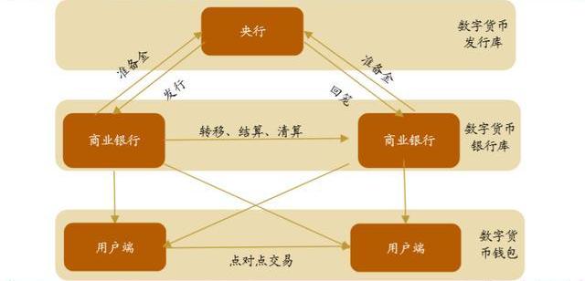 DCEP采取“二元模式”:我国央行数字货币的投放模式为“二元模式”:由央行按照100%准备金将数字货币兑换给商业银行,商业银行或商业机构再对接公众。具体可以将CBDC运行分为3层体系:第一层参与主体为央行和商业银行,涉及数字货币的发行、回笼以及商业银行之间的转移;第二层是商业银行到个人或者企业用户的存取,CBDC在商业银行库和个人或企业数字货币钱包之间转移;第三层是个人或企业用户之间的流通。