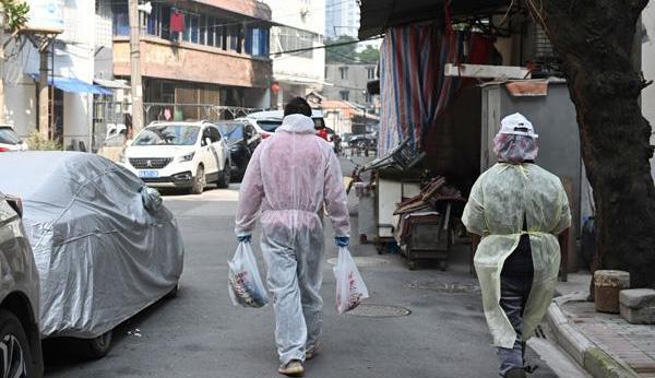 2月5日,武汉市江岸区永清街道仁义社区工作人员为独居老人、困难群众等送菜上门。新华社记者陈晔华摄