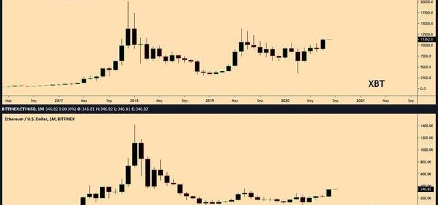 分析师RookieXBT也在推特表示,比特币与以太坊均在7月收于高点,这代表2个币种都可能处在牛市初期。