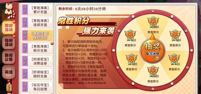 其中这个常胜转盘币和常胜积分维一待会儿会特别说到,而维一发现现在好多次的累积登录活动都变成5天了,以前我没记错的话应该是会有7天奖励的嘛?