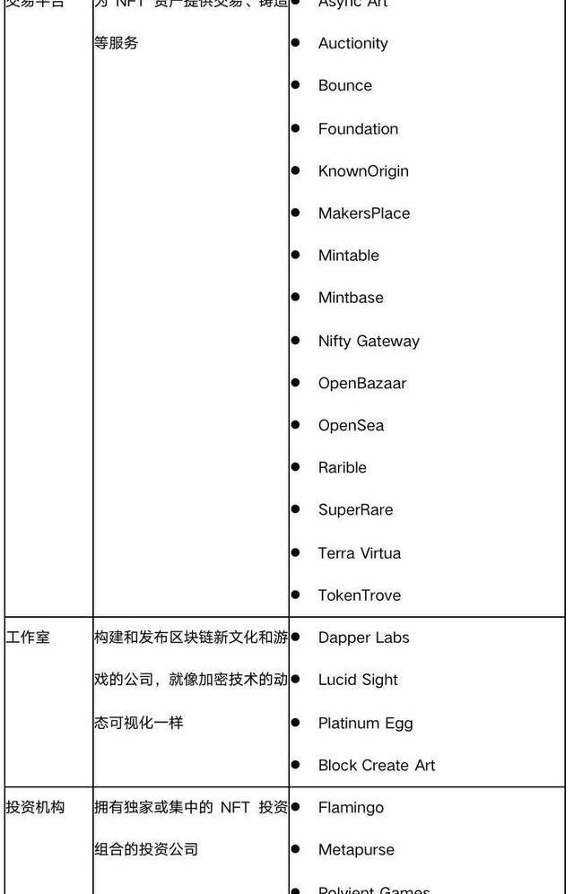 2020年,DapperLabs发行以游戏及其他数字资产为目标市场构建的Layer1公链Flow提升了NFT生态基建完整性。同年,基于Flow开发的NFT数字收藏品NBATOPShot上线仅半年,成交量便逾4200万美金。2021年1月,基于Flow建立的NFT交易平台VIV3正式上线,艺术家、游戏工作室等可使用VIV3采用Flow技术底层铸造NFT代币,对粉丝、收藏家、游戏玩家和数字资产投资者进行资产发售。OpenSea、SuperRare等头部交易平台的NFT作品发行、交易渠道得以多向拓宽。