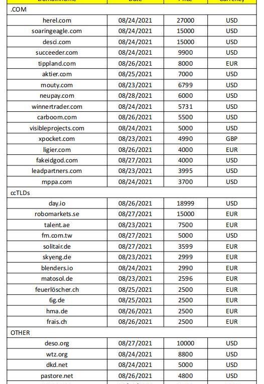 当地时间8月24日,英文域名Herel.com以$27,000美元成交,领先本周Sedo域名销售周榜单;