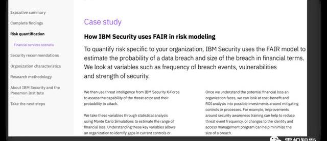 FAIR学院的成员遍布Netflix,惠普等超过45%的美国财富1000企业;NASA、美国能源部等政府部门使用FAIR量化风险;IBM有一个知名的年度数据泄露损失报告,2021年版使用FAIR来量化数据泄露的损失;NIST2021年报告《将安全与企业风险管理整合》建议以FAIR作为量化安全风险的手段;FAIR被TheOpenGroup收录,是目前安全风险量化唯一的国际标准。