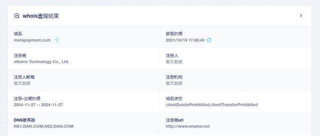 据外媒消息,域名MetaPayments.co在Dan.com平台以$53,450美元交易。域名主体“MetaPayments”由“Meta”+“Payments”组成,有“元支付”的含义;