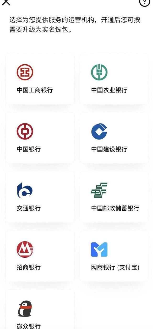 尽管目前全国只有23个试点地区可以使用数字人民币APP,但这款代表着未来数字法币的应用早已收获了几乎所有互联网巨头的支持。从目前的子钱包目录来看,已有包括京东、美团、滴滴、饿了吗、国家电网、携程、顺丰、腾讯视频等多达67家机构和平台可以直接开通,而支付宝背后的网商银行、微信支付背后的微众银行,也已被列为指定运营机构,这两款移动支付巨头也早早都开通了支持数字人民币支付。