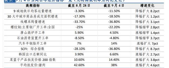 9月4日当周,长城证券中国GDP跟踪指数已连续两周下滑,主要可能是疫情再次冲击所致。8月中下旬以来,继西藏、新疆和海南疫情爆发,成都、深圳、石家庄等地疫情形势再度严峻,对国内经济造成的影响进一步扩大。