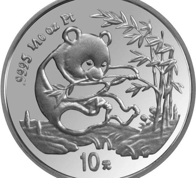 1987版熊猫金铂纪念币中的1盎司铂币为中国首枚铂币。背面主图为熊猫饮水图。成色为99.95%,直径为32毫米,面额为100元,最大发行量为2000枚。