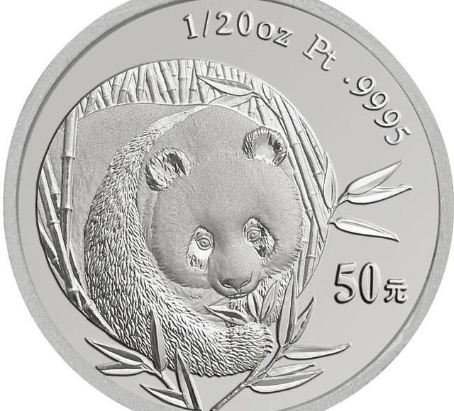2003版熊猫贵金属纪念币含一枚1/20盎司铂币,成色为99.95%,直径为14毫米,面额为50元,最大发行量为5万枚。