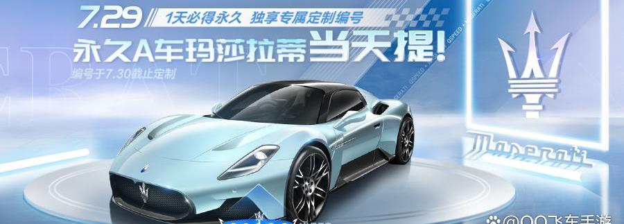 QQ飞车×玛莎拉蒂联动正式开启!7月29日年中盛典,车手们当天登录游戏即可领取永久A车玛莎拉蒂MC20,是不是十分期待啦?同时,还有专属活动重磅来袭,快一起往下看看吧~