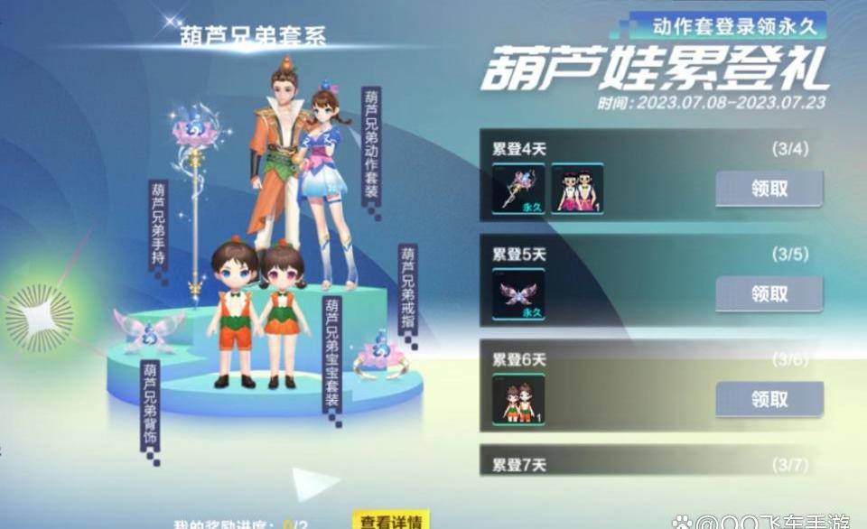 即日起-7月23日,车手们累计登录游戏达到指定天数,即可获得葫芦兄弟动作套装、葫芦六娃套装、葫芦兄弟宝宝套装及全套配饰等惊喜好礼!