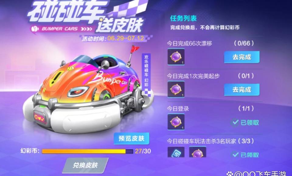 奖励:赛车皮肤欢乐碰碰车幻彩