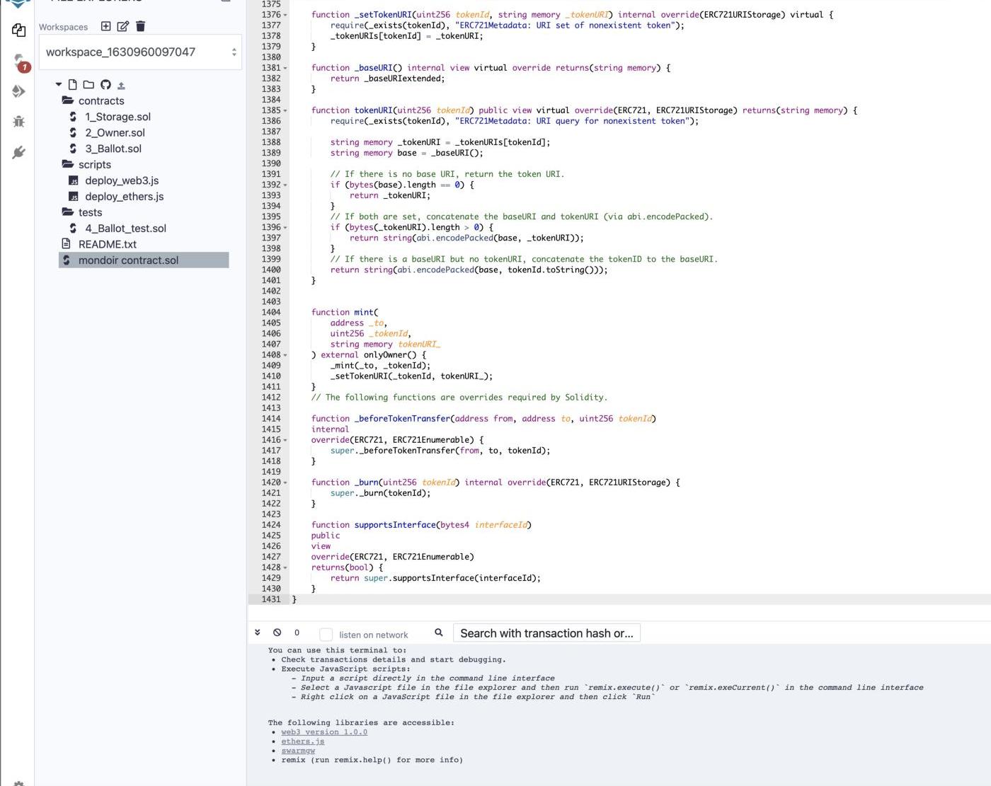 这个智能合约允许你铸造无限数量的独特作品,每个作品都有自己的代币ID和tokenURI。