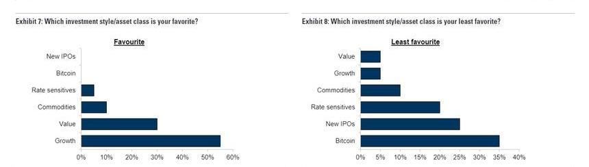 对于35%的首席投资官来说,比特币是最不受欢迎的投资选择,尽管它的表现优于首次公开发行(25%)和对冲(20%)。
