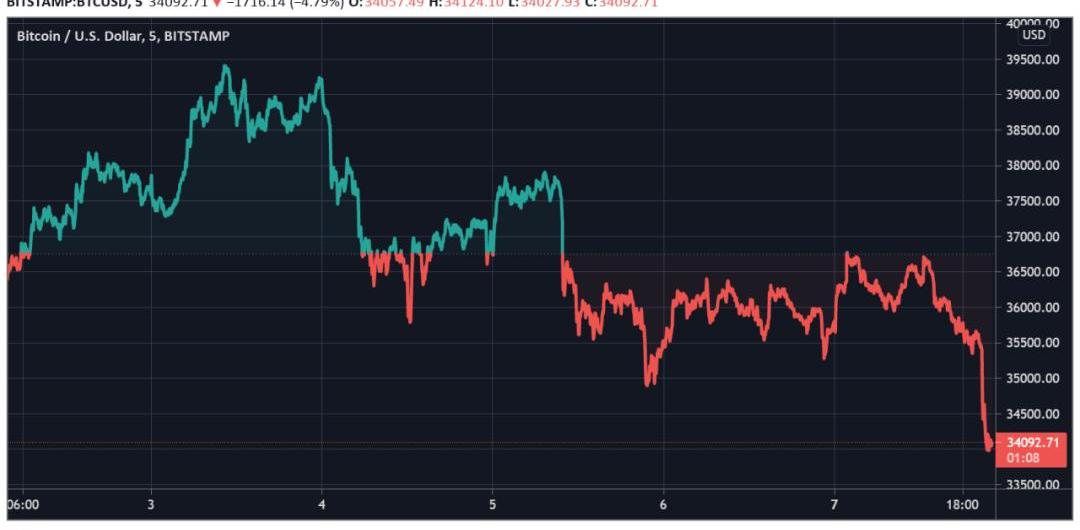 周末,中国微博对加密领域账户的大规模封号,以及中国人民银行关于禁止使用加密货币的公告造成了比特币进一步的下跌。