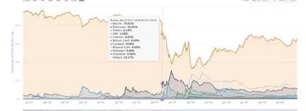 根据CoinMarketCap数据线,比特币市值在整个加密货币市值中的占比已经突破70%,创下了2017年3月以来的新高。