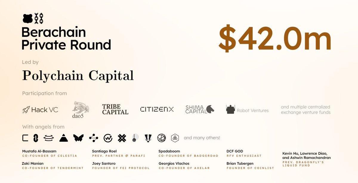 最近,新公链Berachain完成了4200万美元的融资,PolychainCapital领投,HackVC、dao?5、TribeCapital、ShimaCapital、RobotVentures、GoldentreeAssetManagement、OKXVentures参投。