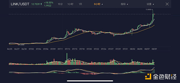 据 OKEx 行情数据显示,预言机 Chainlink 的代币 LINK 在8月9日凌晨短时暴拉,一度突破13 USDT,最高涨至 13.88 USDT,创下历史新高。随后稍有回落,当前报价 12.73 USDT,24小时涨幅 21.27%。