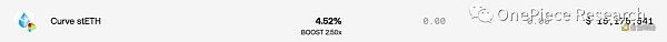 用户还可以在Curve组完LP后,去Yearnfinance上质押stETHLP获得4.52%的年化收益。