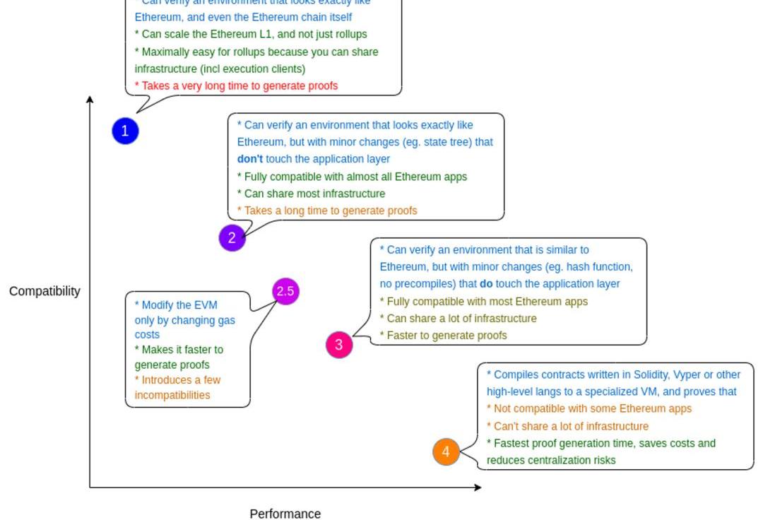 以太坊创始人VitalikButerin将zkEVM分为四种主要类型。