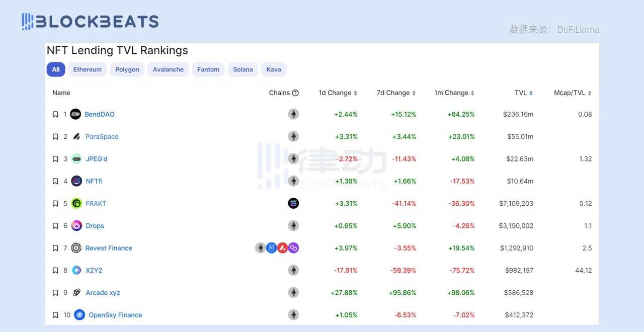 NFT?借贷协议?TVL?排名