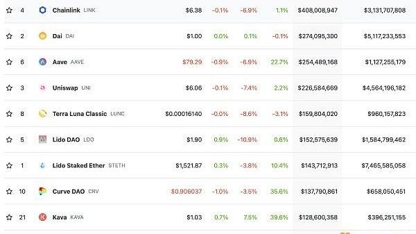 DeFi项目锁定资产前十排名及锁仓量数据来源:defillama