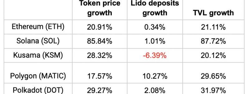 LidoTVL的上涨究其原因,是因为LidoTVL的所有原生代币价格上涨,Lido质押存款也上涨,推动LidoTVL在上周上涨: