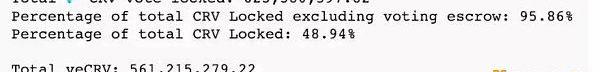Curve设计了著名的VeToken模型,锁定\(CRV可以根据时间加权获得投票Token\)veCRV,锁定时间越长,获得的\(veCRV数量越多,1\)CRV锁定4年就能获得1\(veCRV,而锁定一年只能获得0.25veCRV。**\)veCRV不能转账,因此获取\(veCRV的唯一方式就是锁定\)CRV**。目前48.94%的$CRV已被锁定,平均锁定年限在3.6年。