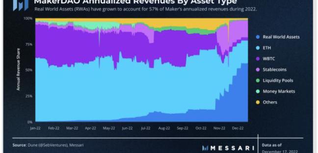 但我最兴奋的部分是现实世界资产RWA向链上的迁移。这是一个巨大的机会,而且它已经在发生,因为RWA在12月份已经增长到占Maker收入的57%: