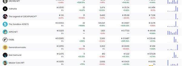 24小时NFT交易量、交易量前十项目数据来源:Coinmarketcap