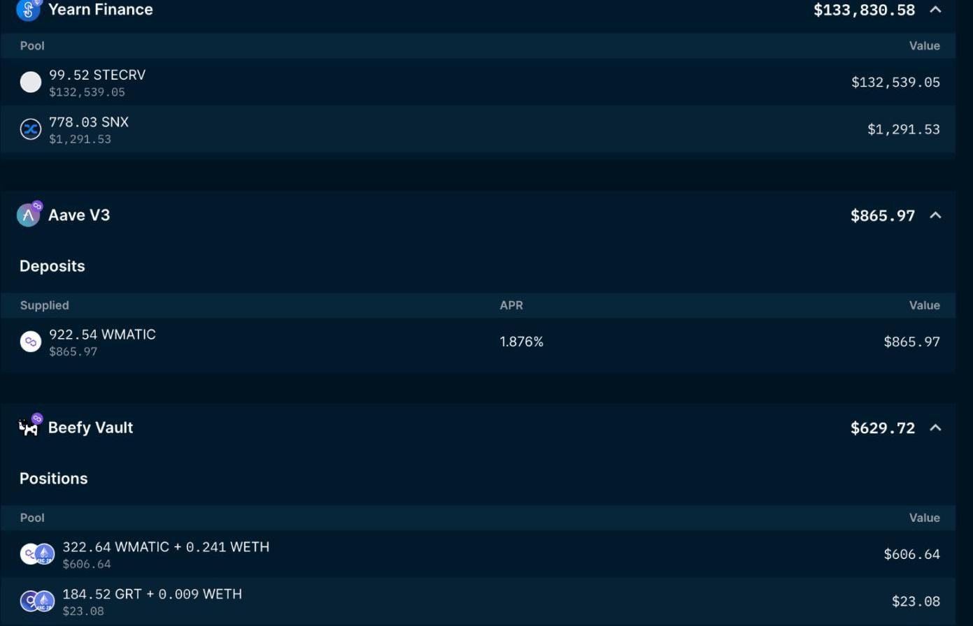 这些是Aave上的钱包和他们使用的矿池,总价值为49.7万美元: