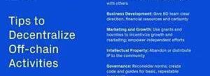 但协议的技术及其自动化程度并不是影响加密资产价值的唯一因素,链下活动也应被视为驱动因素之一;因此,为了降低风险,社区还应寻求链下活动的去中心化,包括: