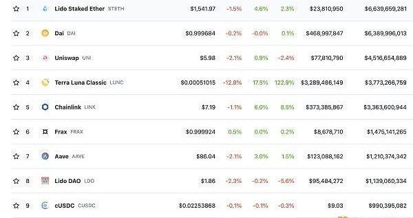 DeFi项目锁定资产前十排名及锁仓量数据来源:defillama