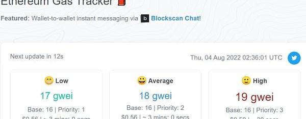 截止至2022年8月4日,此时的以太坊GAS费平均价格仅18Gwei,与939.59Gwei相差52.2倍。