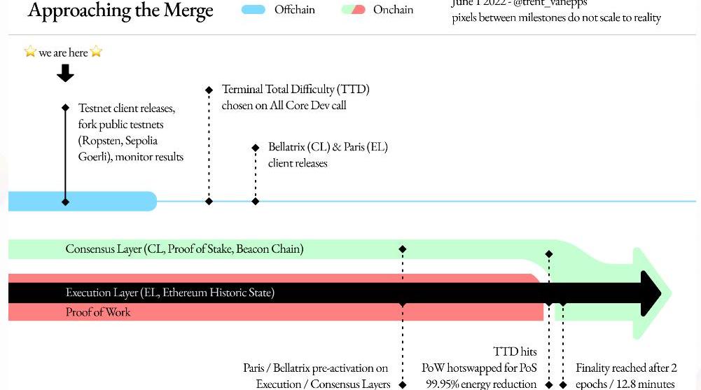 作为发展路径的第一步,信标链和现行以太坊主网的合并已经提上日程。合并预计在9月19日前后进行。