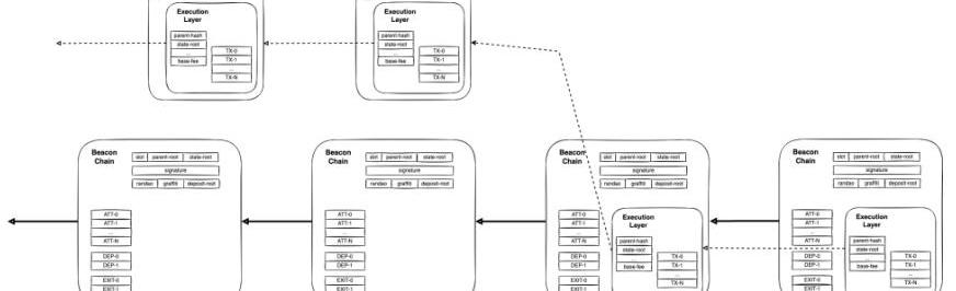 信标链将协调质押网络,类似于一个中枢记账本,记录验证者名单,对验证者进行奖励和惩罚,合并后信标链成为以太坊整体的一部分,应该也会同时承担交易执行、数据可用的职责。在分片实现后,信标链还将协调分片网络。