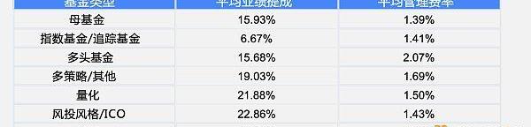 2%的管理费和20%的激励/绩效分成是加密基金最常见的费用结构。但是,所有基金的费率平均数往往较低,并且基金类型之间略有不同。指数和其他被动策略通常不收取业绩提成,而采用更积极投资策略的基金往往有更高的业绩提成。