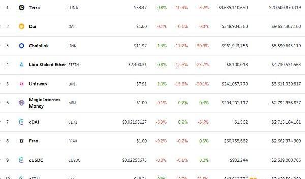 DeFi项目锁定资产前十排名及锁仓量数据来源:defillama