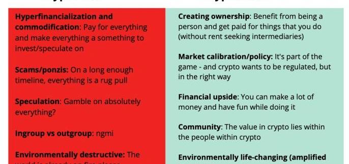 我首先要讨论"CryptoBad"的叙述,然后是"CryptoGood",以强调解释上的差异--CryptoBad看到了超金融化,而CryptoGood看到了创造所有权的能力,等等。